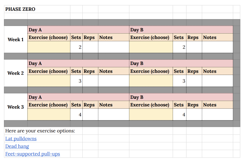 Working on LIFTOFF and interested in pursuing your pull-up, instead of doing lat pulldowns? This program easily attaches to your LIFTOFF program and allows you to start working on your pull-up. (It DOES involve slightly more movement, but you're an ambitious person, right? Otherwise you wouldn't be here).