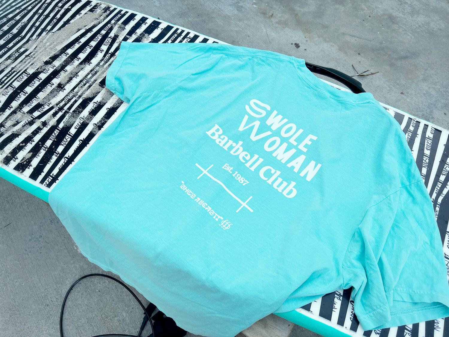"Running club" merch is only trendy because they haven't heard of the barbell club. Get a shirt to support your favorite virtual "club" of She's A Beast/Ask A Swole Woman readers, the jacked of heart and tan of soul.